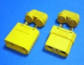 XT90 新型 カーバー付 コネクター オスメス 各1個セット です。 オスはアンプ側、メスはバッテリー側に使用します。 はめ込み式のカバー付きですので シュリングチューブを被せる手間がありません。 従来品のXT90 と互換性があります。 シリコンケーブル8AWGまで、取り付け可能です。 ・許容電流:連続90A、瞬間120A